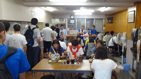 奥では麺茹でが行われていました。皆大忙し。