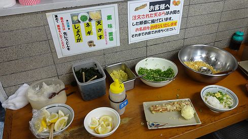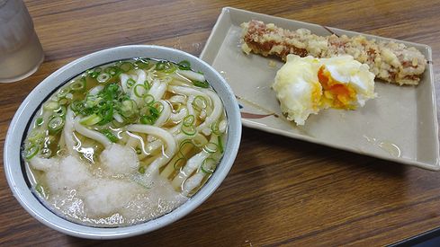 さて、今回はサイドメニューとしてちくわ天とたまご天もオーダー。麺はセルフでゆがいて温めます。