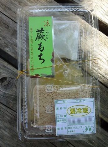 そこで私が頂いたのが、こちらの「はっさく蕨もち」です。ほどよく冷えていて、サイクリングでほてった体にはちょうどいいおやつですね。