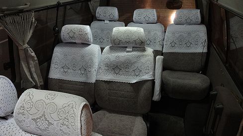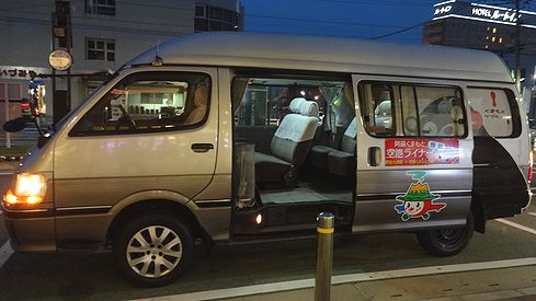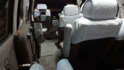 内部はこんな感じ。ごくごく一般的なミニバンです。電車到着から数分で出発しました。