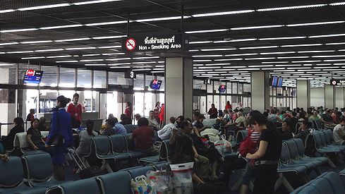今回は、スワンナプーム国際空港からドンムアン空港に無料シャトルバスを使って移動しました。渋滞にも巻き込まれず、50分ほどでスムーズに移動完了。早速ドンムアン空港に入ってみましょう。