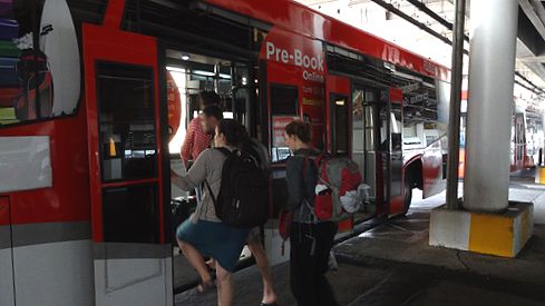 駐機スポットまでは、パスでの移動でした。このバス、結構デカイ!