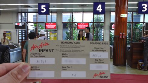 そこでカウンターに立ち寄り、搭乗券を発券してもらいました。待ち時間もなく手続きはすぐに済んだのですが、発券された搭乗券はなんと手書き!しかも幼児用!”INFANT”のところに二重線が引いてありました(笑)。なんとも頼りない搭乗券ですが、これが正式に使えてしまうので、ある意味すごい。