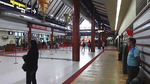 シェムリアップ国際空港は、市内からトゥクトゥクで20分程度、4USD程度が相場のようです。早朝のシェムリアップは意外と涼しく、トゥクトゥクの風邪にあたるとやや肌寒いほどでした。シェムリアップ空港は1階建てで、日本の地方空港レベルの規模しかありません。とてもコンパクト。