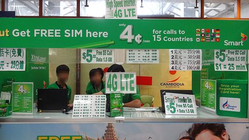 呼び込みの勢いが最も激しかったのが、こちらのSmartのカウンターです。カンボジアで4G/LTEを提供する唯一のキャリアのようです。高速通信を必要とする方は、Smart一択でしょうね。