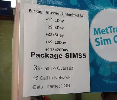 この他に、3USD分の海外通話と2GBのデータ通信がセットになったパッケージが5USDで売られていました。なかなか良心的です。