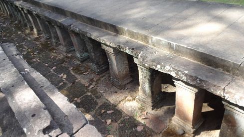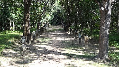 東側には参道があり、両側に石柱がずらっと並んでいます。強烈な日差しと、それを遮る子が下が印象的でした。