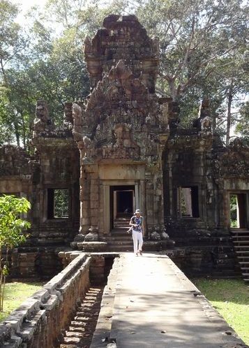 小回りコースでは、人気遺跡の他にもその周辺の規模の小さな遺跡にも連れて行ってくれます。今回連れて行ってくれたのは、こちらのチャウ・サイ・テボーダという遺跡。12世紀初頭に建立された元々はヒンドゥー教の寺院です。道路に面してはいるものの鬱蒼としたジャングルの中にあるため、トゥクトゥクドライバーの案内なしでは見過ごしてしまいそうです。