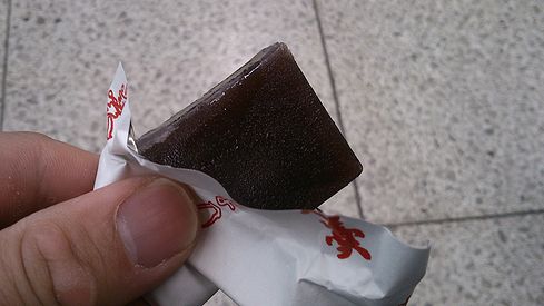 帰りの電車の待ち時間に、一口羊羹を早速頂きました。甘すぎず、しつこくないお味が好印象です。