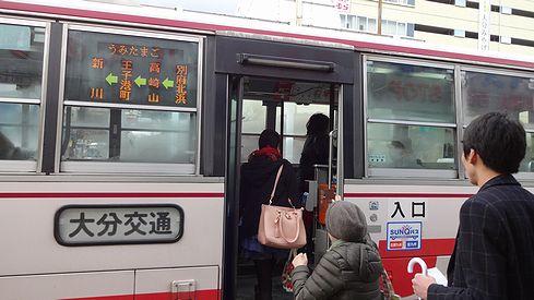こちらから、大分交通のバスに乗り込みましょう。