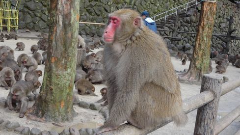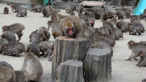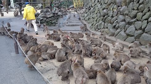 飼育員さんがエサを巻き始めると、一斉に猿が集まってきます。これはかなり迫力がありますよ。ちょっと怖いくらい。ま、余程のことがない限り人に危害を加えることがないんですが。