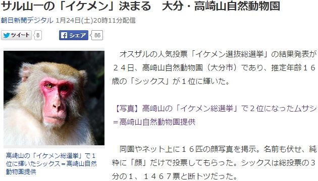 高崎山自然動物園では、猿のイケメン選抜総選挙が行われていました。「顔だけで選んで」と言われても……。正直、皆同じ顔に見えます(笑)。