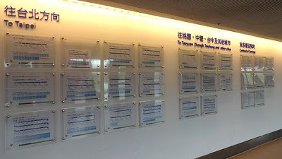 ▲バスのりばは第1ターミナル1階にあります(もちろん第2ターミナルにもあります)。桃園国際空港からは様々なバスが出ていますね。各バスのルートごとに、バス停などを記した案内が掲載されていました。初めてだと、どれに乗ればいいのか迷ってしまいますよね。