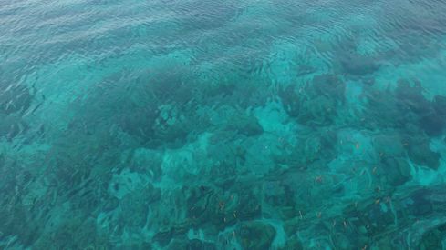 ▲海はエメラルドグリーンで透明度が高く、海底のサンゴの様子がよくわかります。水深は5m程でしょうか。ライフジャケットを着てプカプカするのも良し、ライフジャケットを着ずにスキンダイビングを楽しむも良し。この素晴らしい海を満喫しましょう!