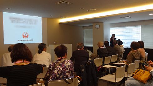 ▲見学会は最初の30分がパワーポイントを用いた座学になっていて、飛行機が飛ぶ仕組みやら、JALの各社員の仕事内容やら、非常に興味深いお話を聞くことができました。
