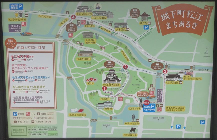 松江城は、宍道湖を見渡す高台にあり、JR松江駅からも一畑電車松江しんじ湖温泉駅からもかなりの距離がありますので、アクセスには素直にバスを使ったほうが良さそうです。と言いつつも私は松江しんじ湖温泉駅から歩きましたが……。30~40分はかかりました。