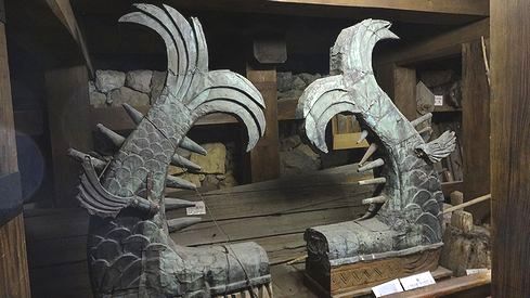 ▲天守閣内部には松江城にまつわる品々が展示されています。こちらは鯱。重厚な作りですね。