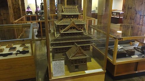 ▲天守閣の骨組みの模型や、