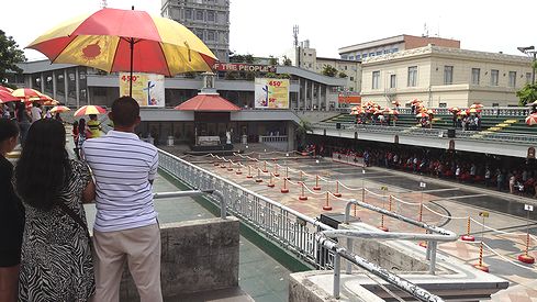 ▲写真ではほとんど人がいないように見えますが、屋根付きの一階部分に大勢の信者が密集して、説教に耳を傾けていました。日差しが強いので、誰も外に出たがらないのです。溢れてしまった人には、教会が日傘を貸し出していました。(それくらいセブの日差しは強いんです!)