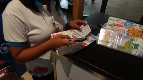 ▲アクティベーション作業は、スタッフさんがやってくれます。これはお任せしてしまったほうがいいですね。まず、スタッフさんの携帯電話で何やらダイヤルしてから、購入したSIMを私のスマートフォンに差し込み、さらに何回かダイヤルしていました。