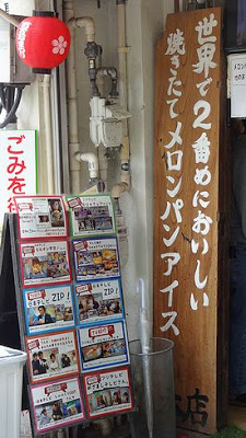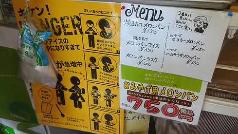 ▲「世界で2番め」というのも引っかかるのですが(1番目はどこなのか?)、そもそもメロンパンアイスなるものが初耳。メロンパンアイスなるものは他の店でも売っているのか?この店だけじゃないの?ますます謎は深まります。様々なテレビ番組でも取り上げられたようで、放送の様子がたくさん飾られていました。