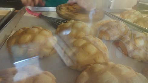 ▲メロンパンは、カウンター裏のオーブンで焼き上げています。そのため焼きたてのアツアツで提供されます。早く食べたーい!