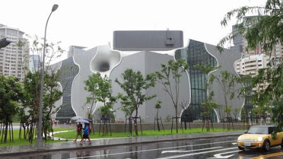▲台中国家歌劇院は、台鐵台中駅からBRT(トラム型バス)に乗ること15分、新光三越デパートの向かい側にあります。