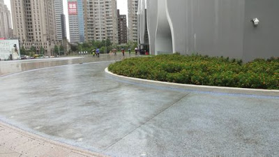 正式なオープンはまだですが7、すでに観光地になっていて、団体で写真を撮っているグループもいました。写真奥の人たちがそうです。ま、私のように土砂降りの中、わざわざ建築物見学をする物好きもいますし……。こんな建物は他にはないんだもの、そりゃ、記念撮影したくなりますよね。