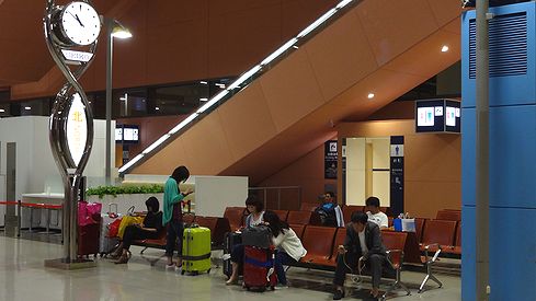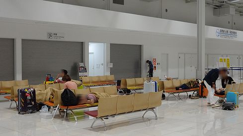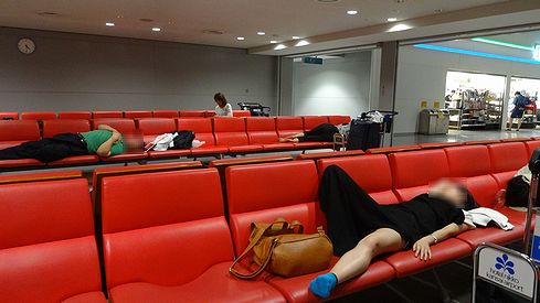 ▲深夜に到着する便も多く、来日客やその出迎えなどでかなりガヤガヤしています。とても寝られそうにはありません。