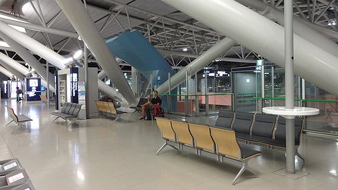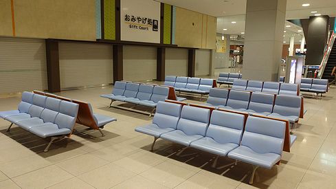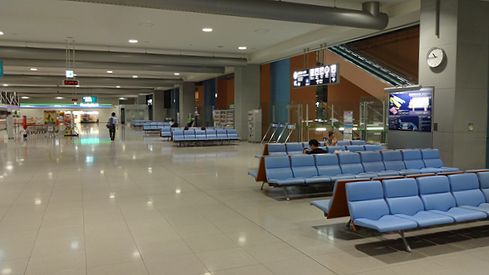 ▲1階の国際線到着エリアはあまりお薦めできません。ベンチの数はたしかに多いのですが……