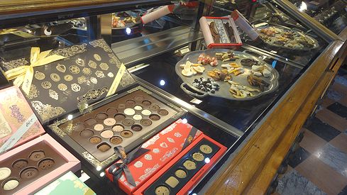 ▲さて、現在の宮原眼科でメインで売られているのはスイーツなんです。宝石のように飾られたチョコレートが、どれも美味しそう!