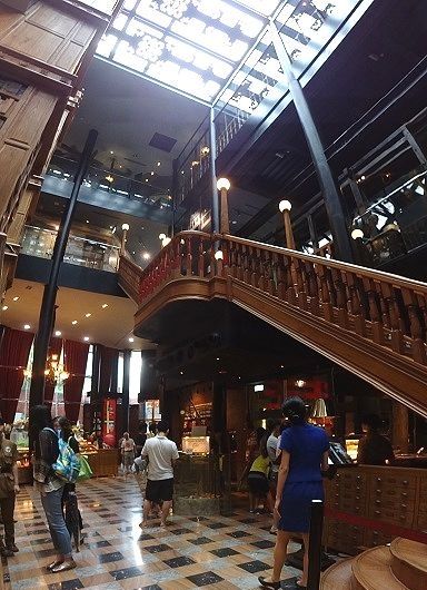 ▲こちらは本棚風の装飾。右側には面白そうなものが展示してあるのですが、中国語が読めないため、何の展示なのか分からず……。
