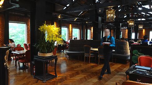 ▲2階は本格的なレストラン。ランチやディナーをいただけます。雰囲気が独特で、高級感がありますね。