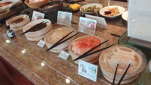 ▲ウィンナーやチキン、各種温野菜も取り揃えられており……