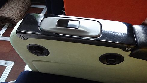 ▲肘掛けにはシート全体のリクライニング(電動)、背もたれのリクライニング、レッグレストの3つのボタンがありました。これでお好みの姿勢に調整できます。
