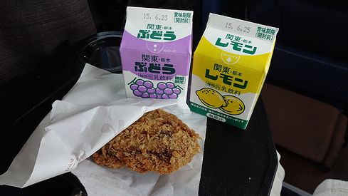 ▲栃木といえば「レモン牛乳」はマスト。そして、期間限定で販売されている「ぶどう牛乳」も衝動買い(笑)。メンチカツとともに美味しく頂きました。