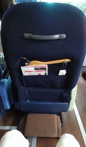 ▲シートポケットには、安全のしおり、シートの操作方法の説明、そしてオリジナル雑誌が入っていました。まるで飛行機のようですね。
