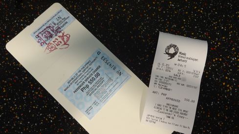 ▲現金だけでなく、クレジットカードでの支払いも可能でした。搭乗券の裏面に、支払証明書が貼り付けられます。
