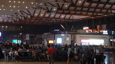 ▲こちらはとある高速鉄道の駅の待合室です。だだっ広く、サッカーコート2面分ほどの広さがありました。しかし、場内には飲食店は一つもありません。