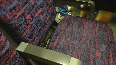 ▲隣の座席の座面が外れていました。こんなのありえないでしょ。日本だったらすぐに修理するレベルの事案だと思います。というか、どんな座り方をしたら座面が外れるのでしょうか。そんなにモロイものなの?!隣の席のオッサンは、席が壊れていても特に気にせず座っていましたが……。