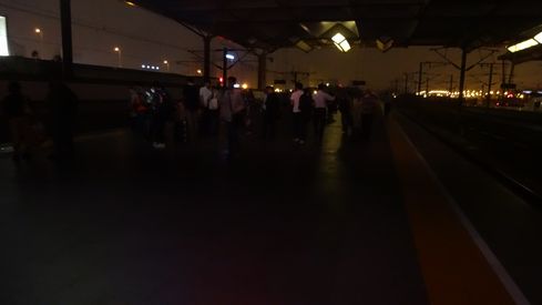 ▲ホームに降りてみると、なんと真っ暗。夜なのにほとんど照明がついていません。これってかなり危険だと思うんだけど……。この旅行を通して感じたのは、中国の施設は巨大で外面はすごいのだけれども、内実が伴っていないという点です。スーツケースを抱えた旅行者がたくさんいるのにエレベーターやエスカレーターが無かったり、チケット売り場からホームまで数百メートルも歩かされたり。利用者視点が欠如しているんですね。