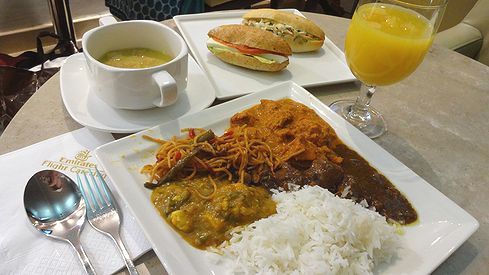 ▲長時間のフライト前に、ガッツリと頂きました。カレーがスパイシーでとても美味しかったですよ。マルハバラウンジでは是非食事をしましょう。食べ物のレベルがかなり高いラウンジです。