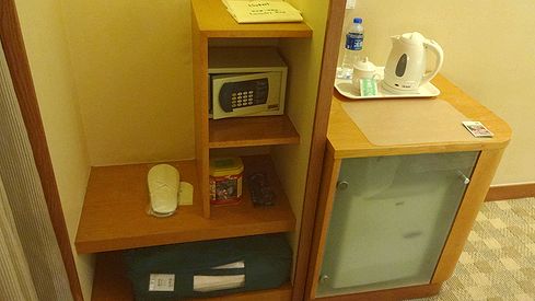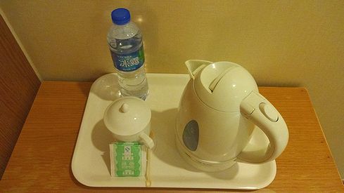 ▲そのわきには、お茶のセットとミネラルウォーター(こちらは無料)もありました。まるで日本のビジネスホテルのような、必要十分なサービスですね。