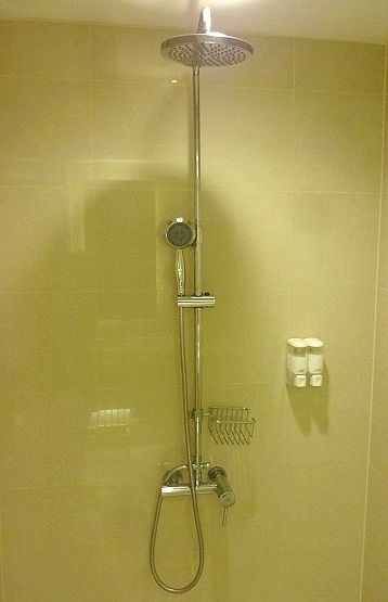 ▲バスタブはなくシャワーのみですが、ハンドシャワーとレインシャワーの2つが用意されています。快適に過ごすのには申し分ない設備だと思います。