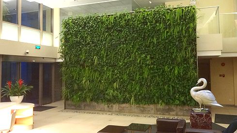 ▲チェックインカウンターの脇には、白鳥のオブジェやら、グリーンウォールが飾られていました。