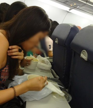 ▲さて、今回私が驚かされたのが、隣りに座った中国へ帰るという女子2人組。自席に着くなり(離陸前)、空港で買ったと思われるスープヌードルをいきなり食べ始めたのです!えええ~!!!CAさんも注意しないし、これって日常なの?「私達お腹空いていてるの」と英語で断りを言ってはいたのですが、せめて離陸後水平飛行に移行してからにして欲しかった……