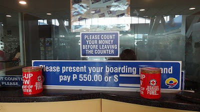 ▲マニラ国際空港では、550ペソの施設使用料が徴収されます。出国審査場の手前のカウンターで支払いを済ませます。支払いは現金でもクレジトカードでも可能でした。(追記:2015年2月1日以降に発券された航空券については、施設使用料が航空券代金と併せて徴収されるようになりましたので、こちらに立ち寄る必要はなくなりました。⇒セブ・パシフィック航空アナウンスメント ご指摘ありがとうございました。)