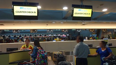 ▲まずはチェックイン。今回のチケットは、受託手荷物料金などのオプションが一切ないスタンダードなものでした(そのため激安なのですが)。しかしカウンターで、キャビンへ持ち込みを予定していたスーツケースの重量を測ってみると、なんと7kg超え!これは痛恨のミスです。機内には持ち込めないので、追加料金を払って預入しなければなりませんでした。900ペソ(約2,300円)を追加で支払いました。