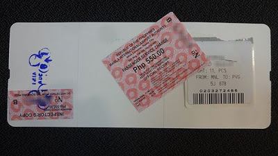 ▲施設使用料を払うと、搭乗券の裏面にレシートが貼り付けられます。これがないと、出国できませんのでご注意を。