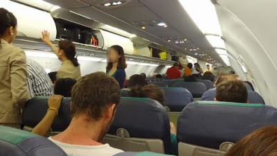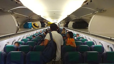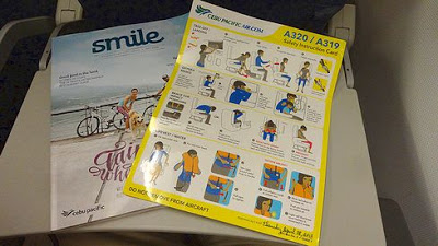 ▲乗り込んでみますと、いつものセブ・パシフィックのキャビンです。シートの配色がパッとしませんね。もう少し明るい色使いだと、セブらしいトロピカルな雰囲気が出ると思うのですが。